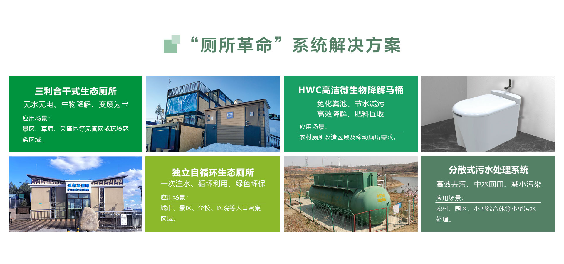 我們專注于“源頭”上的廁所革命,系統(tǒng)解決景區(qū)(點)、城市和農村三大領域的實際需求,是真正意義上的生態(tài)環(huán)保廁所。
